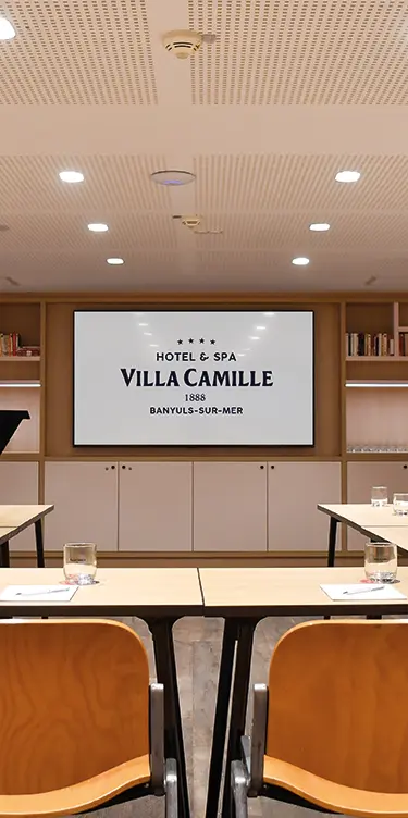 Idealmente situado en el centro de Banyuls-sur-Mer, a dos pasos de Collioure, la Villa Camille Hotel & Spa cuenta con un espacio ideal para sus eventos empresariales, con una capacidad de hasta 49 personas y en primera línea de playa.